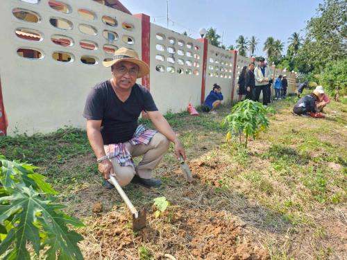 วันที่ 22 เมษายน พ.ศ.2569 นายบุญเลิศ เนตร์ขำ นายอำเภอทุ่งตะโก พร้อมด้วย หัวหน้าส่วนราชการ ข้าราชการ ผู้นำท้องที่ ประชาชนและเยาวชนในพื้นที่ บูรณาการขับเคลื่อนการน้อมนําแนวพระราชดําริของสมเด็จพระกนิษฐาธิราชเจ้ากรมสมเด็จพระเทพรัตนราชสุดา ฯ สยามบรมราชกุมารี สู่ปฏิบัติการปลูกผักสวนครัว เพื่อสร้างความมั่นคงทางอาหาร ตามแนวทางประจำปีงบประมาณ พ.ศ. 2569 ร่วมกับ 7 ภาคีเครือข่ายการพัฒนาชุมชน ภายใต้แนวคิด “ปรับเปลี่ยนดี ชีวีมีสุข” (Chang for 5G Plus) โดยมีกิจกรรม "ผู้นำต้องทำก่อน" เริ่มที่ตัวเรา “เจ้าหน้าที่พัฒนาชุมชนและเจ้าหน้าที่รัฐทุกคน” ปลูกผักสวนครัวอย่างน้อย 10 ชนิด ในพื้นที่บ้านพักหรือที่ทํางาน เพื่อเป็นตัวอย่างและสร้างกระบวนการเรียนรู้ ก่อนไปส่งเสริมประชาชน เป็นการสานพลังความต่อเนื่องในการสร้างความมั่นคงทางอาหารอย่างยั่งยืน สร้างชุมชนเข้มแข็ง สังคมเกื้อกูล เพิ่มพูนความสามัคคี ตามวิถีเศรษฐกิจพอเพียง พร้อมรับมือกับสถานการณ์โลก ที่อาจส่งผลกระทบต่อชุมชน ณ บ้านพักนายอำเภอ ที่ว่าการอำเภอทุ่งตะโก จังหวัดชุมพร